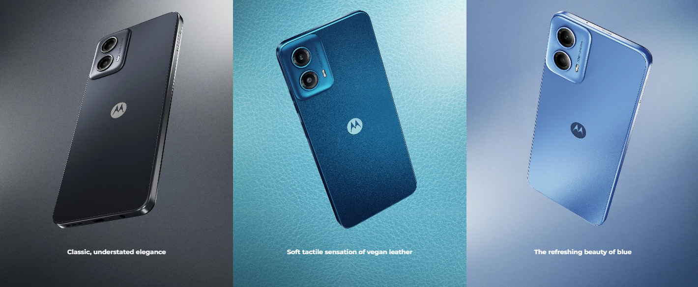 Available in three striking colors*, moto g34 5G has a slim, sleek, stylish look and luxurious feel with a smooth, matte finish or a vegan leather option.