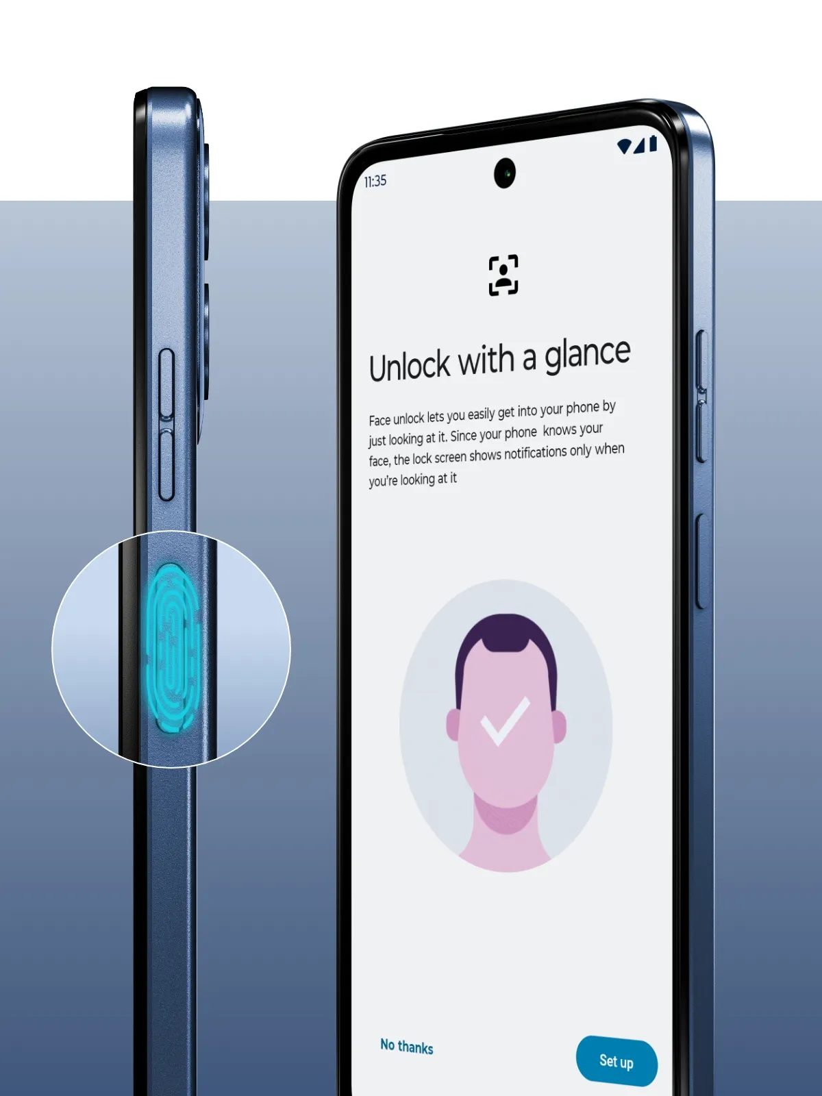 Unlock your phone by touching the side fingerprint reader or glancing at the camera.